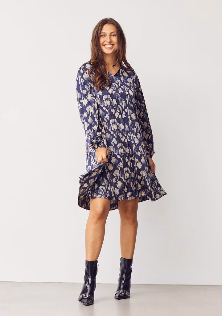 n vacker och feminin klänning med plisserad design och trendigt tryck. Bitten Pleat Dress har långa ärmar med elastiska manschetter, nedsänkta axlar, breda ärmar samt V-ringning. Klänningen är tillverkad i en bekväm kvalitet av 100 % polyester och har lös passform med en feminin A-skärning. Bitten Pleat Dress är den perfekta kombinationen av stil och komfort.