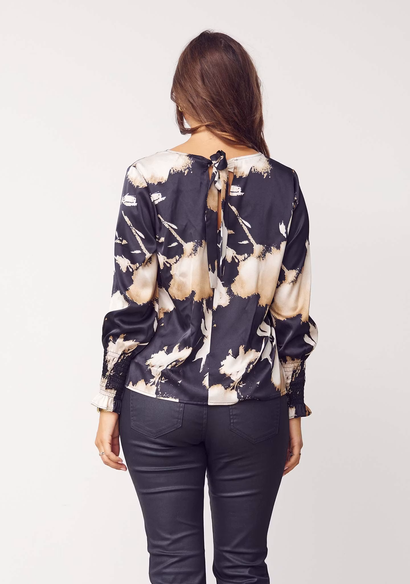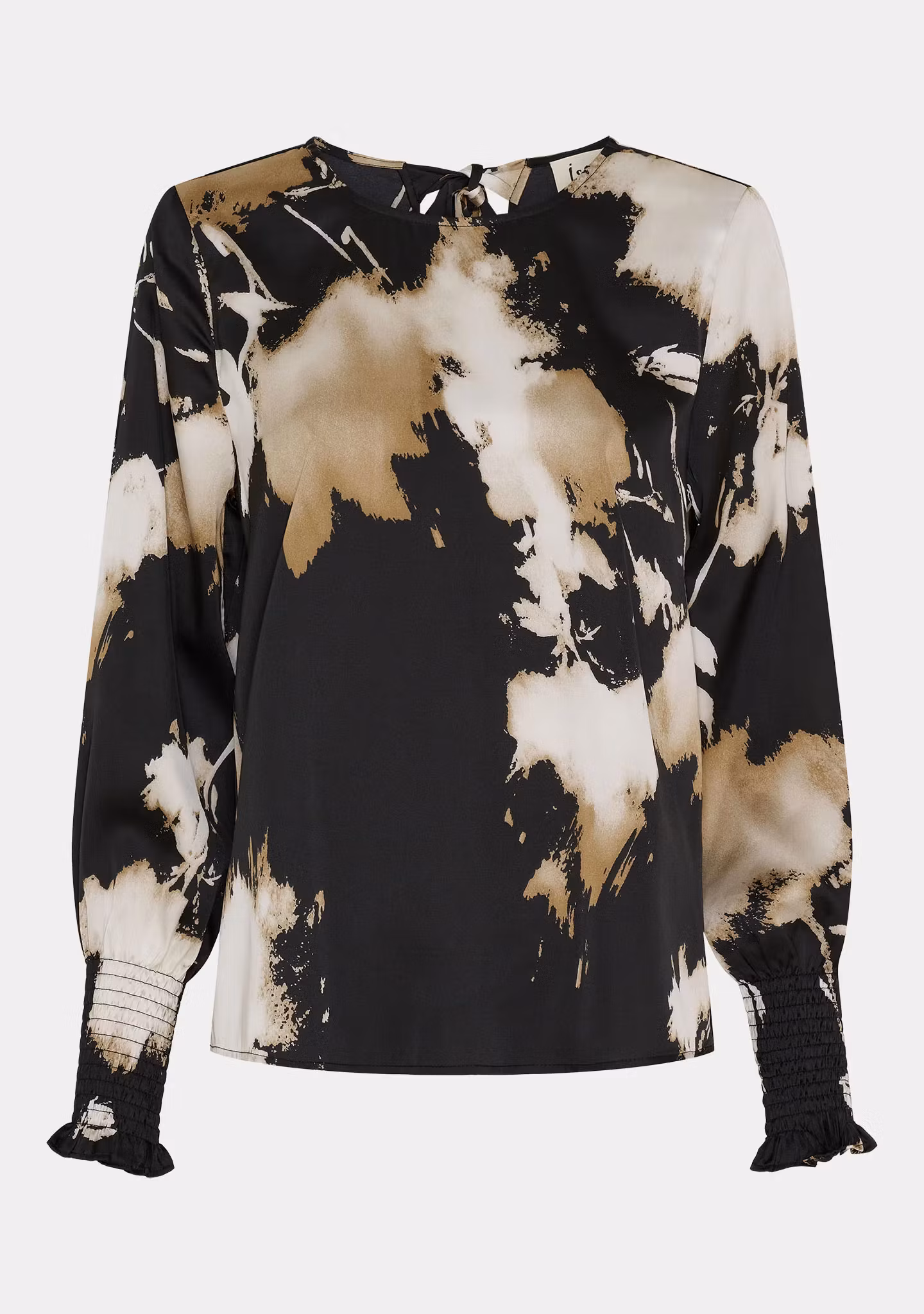På baksidan har Kleo Blusen ett påsytt band i nacken som du kan knyta till en rosett eller låta hänga löst - beroende på din stil. Kvaliteten är vävt polyester med lätt glans och vackert fall.